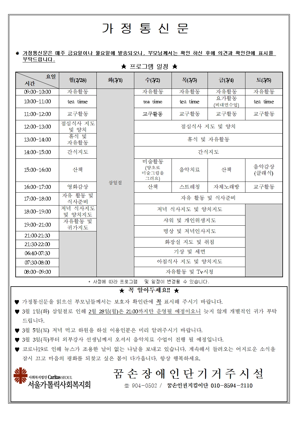 2022년 3월 둘째주 가정통신문입니다.
