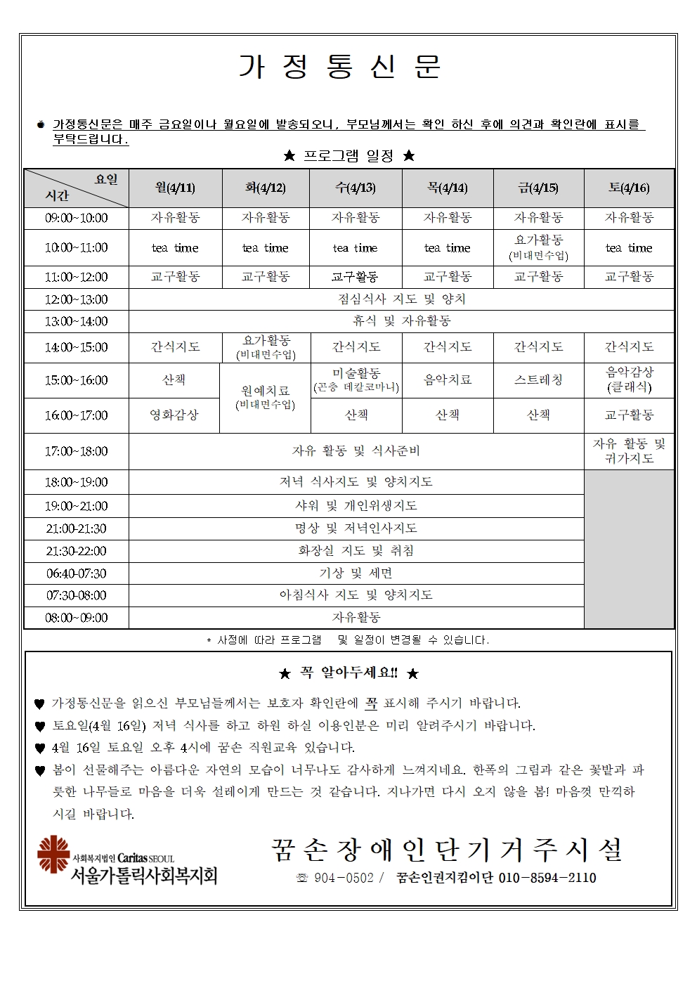 2022년 4월 둘째주 가정통신문입니다.