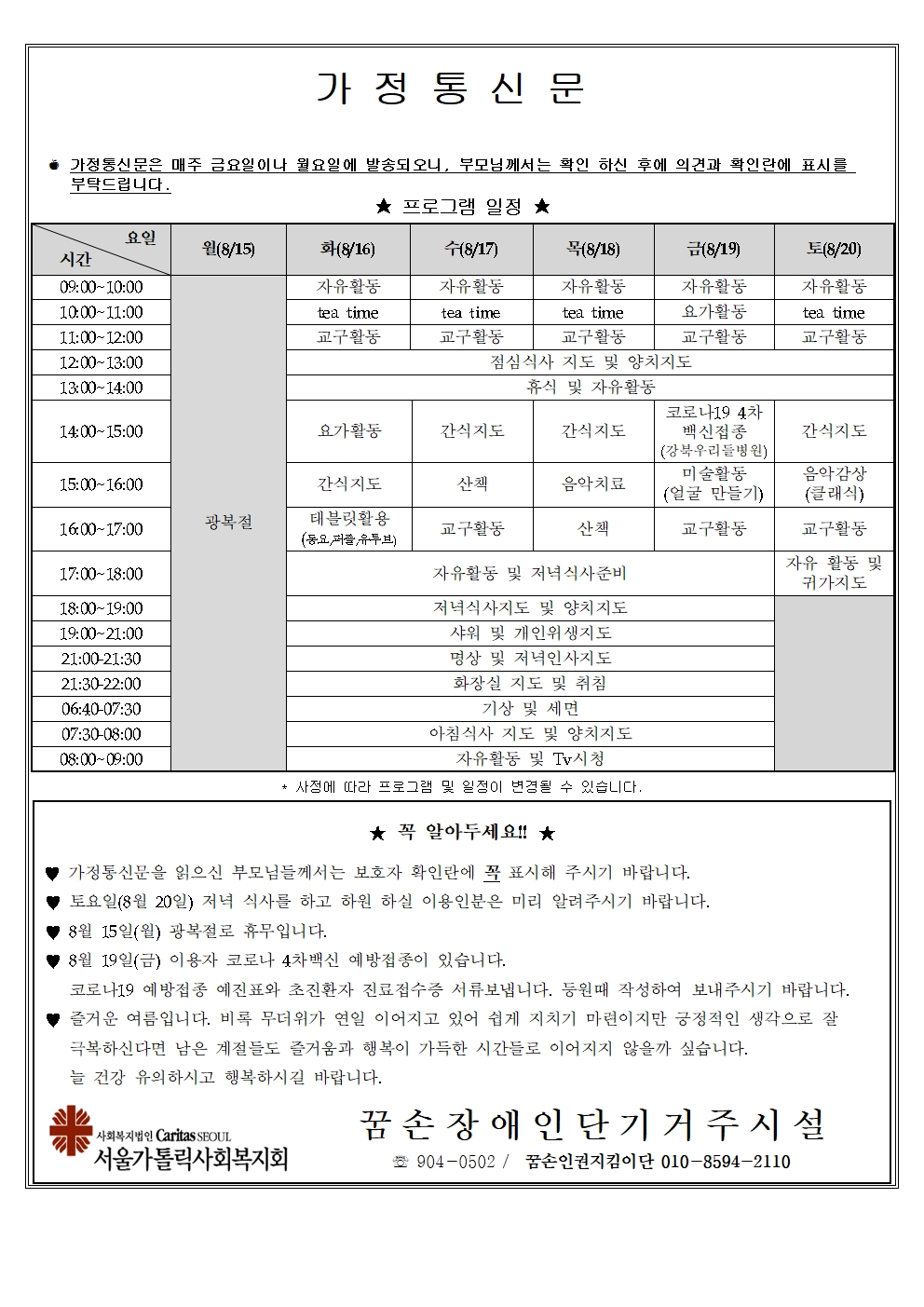 2022년 8월 셋째주 가정통신문입니다.
