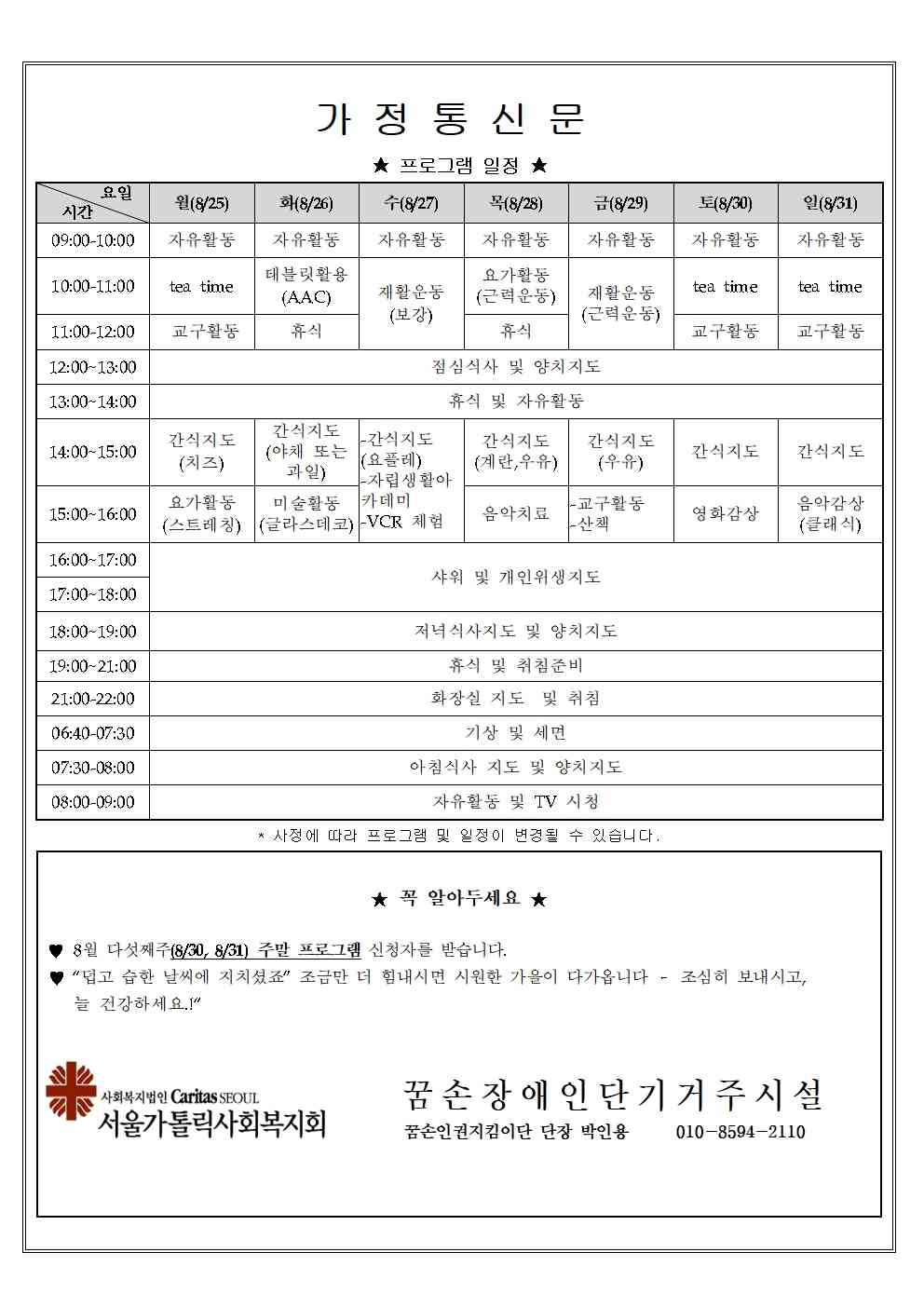 2025년. 8월 다섯째주 가정통신문입니다
