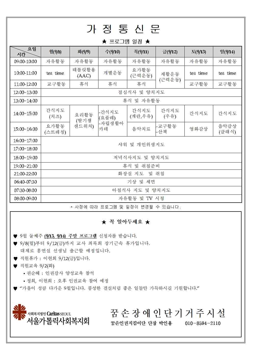 2025년 9월 둘째주 가정통신문입니다.