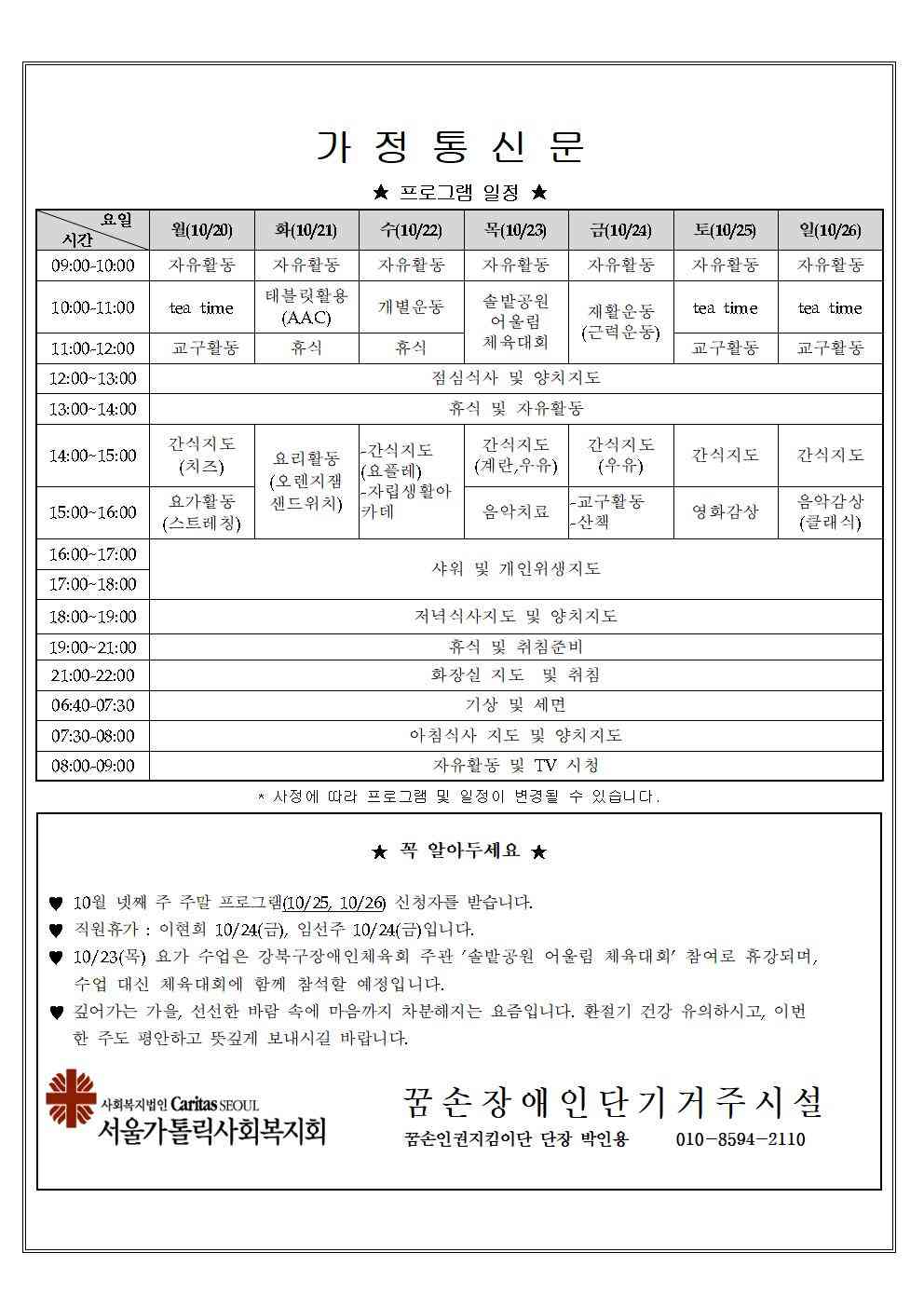 2025년 10월 셋째주 가정통신문입니다.