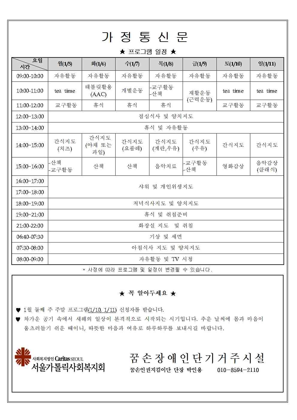 2026년 1월 둘째주 가정통신문입니다.