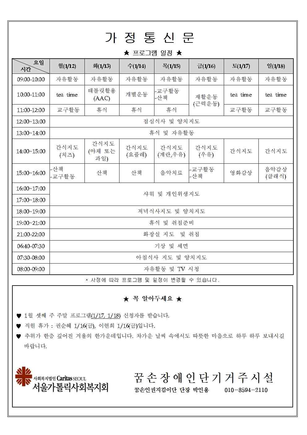2026년 1월 셋째주 가정통신문입니다.